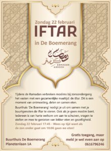 FreeKom op zondag 22 februari naar jouw buurthuis voor een gezellige en smakelijk Iftar. Moslims die vasten tijdens de Ramadan, verbreken het vasten na zonsondergang. Dat doen ze met een gezamenlijke maaltijd. Jij kunt er ook bij zijn, ook als je niet meedoet met het vasten of als je geen moslim bent. Schuif aan en beleef het mee.